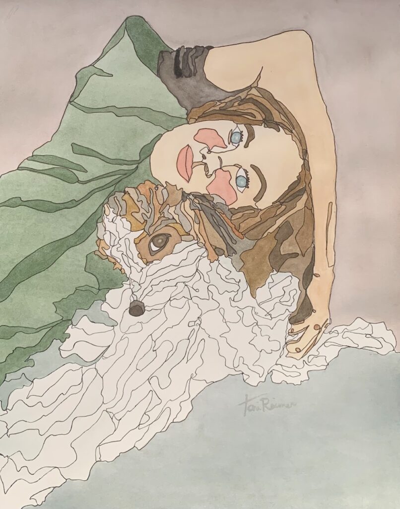 Toni Reimer is an emerging artist living in Winnipeg, MB. She began painting a few years ago when she was given a set of watercolour paints, paper, and brushes. Her style evolved quickly from basic illustration to more realistic portraits to her uniquely recognizable work inspired by one-line drawings. Her experience working as an actor has played a central role in the subject of her art. Story, character, motivation and emotion can be seen throughout her work. Her focus is on bringing the inner life of a person to the surface.